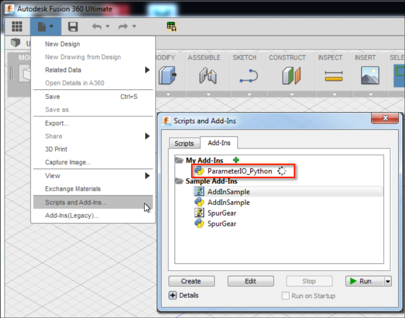 Once you restart Fusion the Add-In or Script will be ready to use and shows up in the Scripts and Add-Ins dialog:
